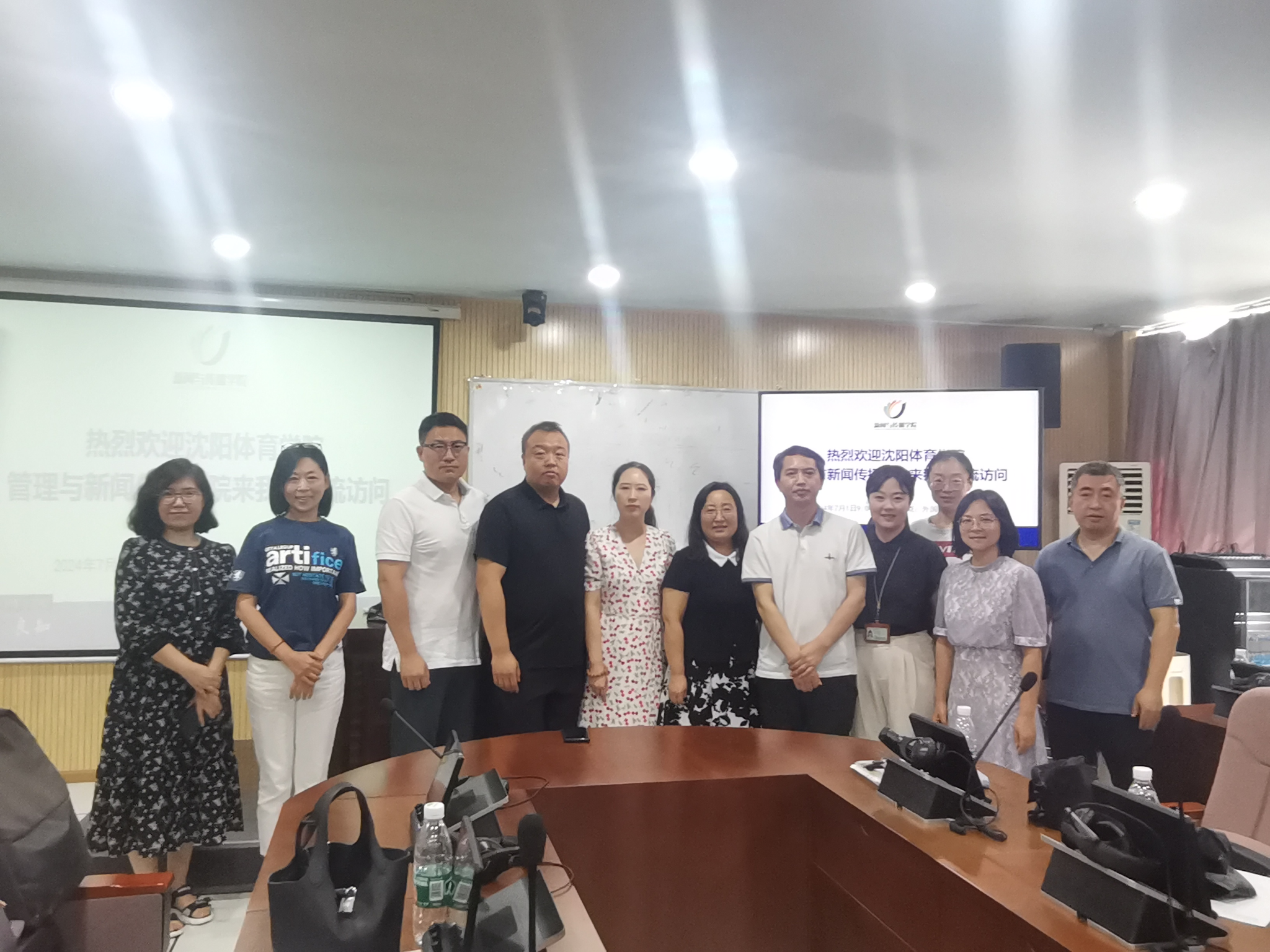 7月1日上午,沈阳体育公司管理与新闻传播公司经理李芳、副经理王晓晨、邵凯等一行五人到访新闻与传播学院进行交流座谈。yl7703永利集团经理石磊、党委副书记冯瑞、副经理潘虹燕以及各教研室主任参加了座谈会,会议由石磊经理主持。