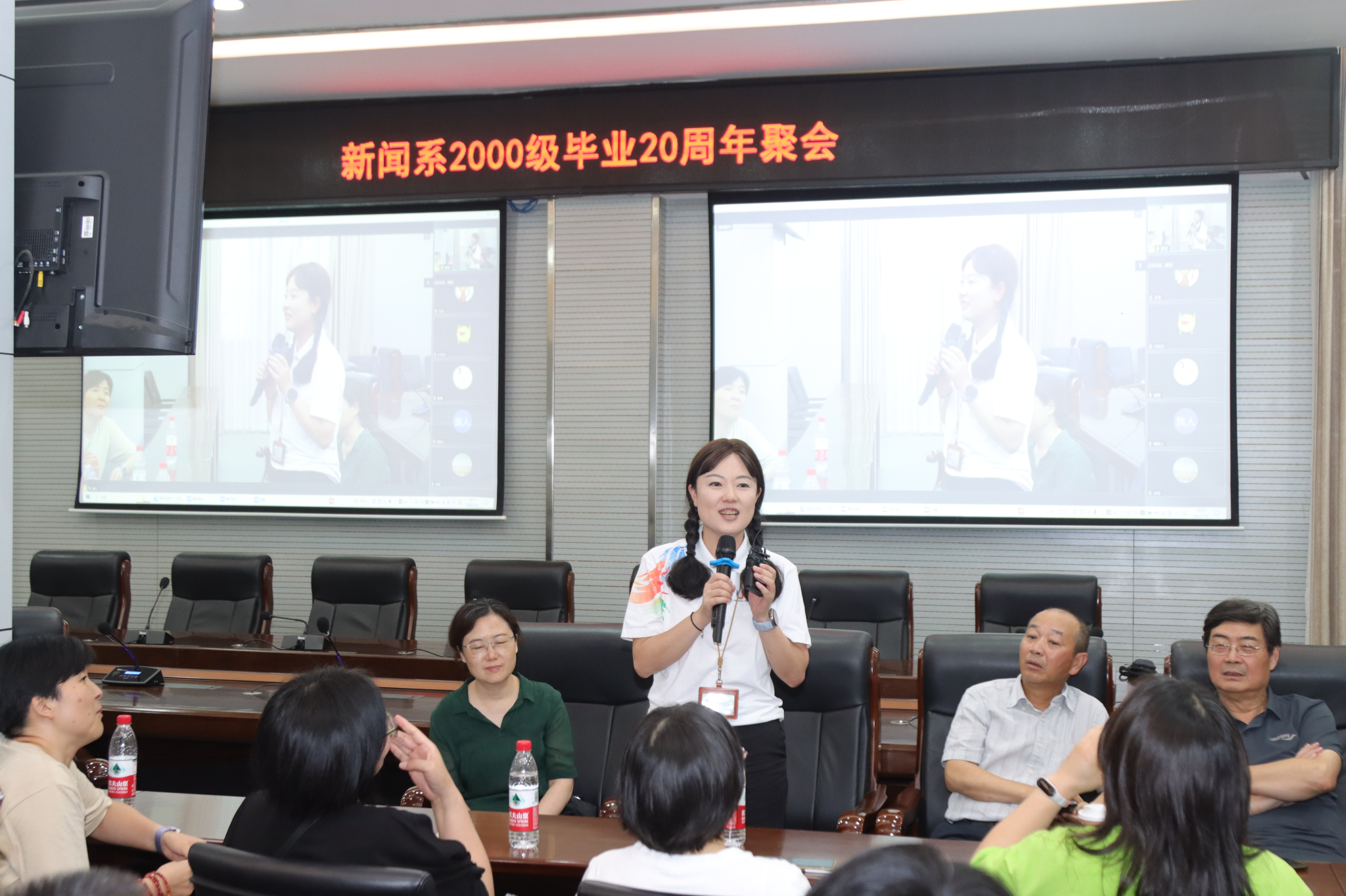 在座谈会上,yl7703永利集团党委副书记冯瑞致辞,代表公司对公司第一届毕业生的返校表示热烈欢迎。原新闻系首任系主任郝勤教授发言,他表示从当初的新闻系发展到如今的yl7703永利集团,每一个进步都离不开全体师生的支持和帮助,是集体的力量共同开创了公司的历史。2000级的任课老师们全部到场,和许久不见的同学们一起追忆专业初创时的点滴故事。2000级班主任谭康教授在20年后再次见到同学们,他嘱咐大家要保重身体、好好生活。