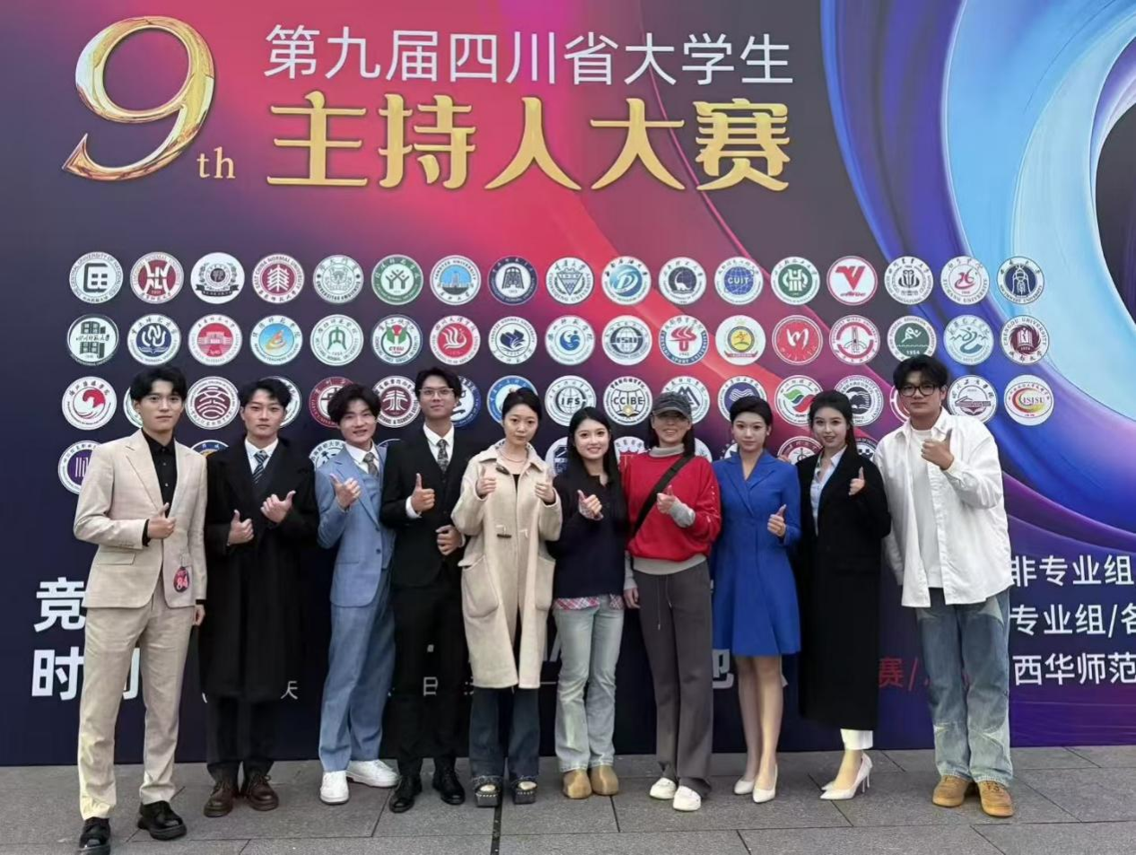 四川省老员工主持人大赛是四川省教育厅主办的省内最高水准的播音主持类赛事之一,分专业组和非专业组两个组别。本届大赛于11月9日-11日在西华师范大学举行,来自川渝两地60多所高校的近300名选手参加了专业组的比拼。我院播音与主持艺术专业派出邱子轩等9名员工参加了专业组电视主持、广播主持、网络主持三个赛道的比拼。参赛员工在指导老师成帝成、邹瑶的带领下,对节目策划与主持风格定位、主持文稿撰写、主持中有声语言和副语言表达、视频剪辑与主持声画同步性、主持节奏把控等环节进行了细致充分的赛前备赛。比赛中,同学们敢打敢拼,表现出良好的精神面貌和过硬的专业能力,自备主持、即兴评述完成度高,舞台整体呈现效果优秀。