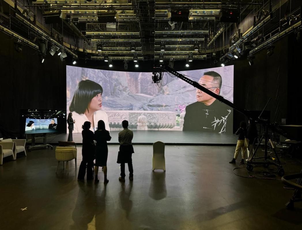 在星海视听公司政企业务负责人毕圣的陪同下,公司一行实地参观了公司XR演播室,深入了解演播室的技术功能、场景搭建及实际应用情况,切身感受前沿虚拟拍摄技术对传媒行业带来的变革。