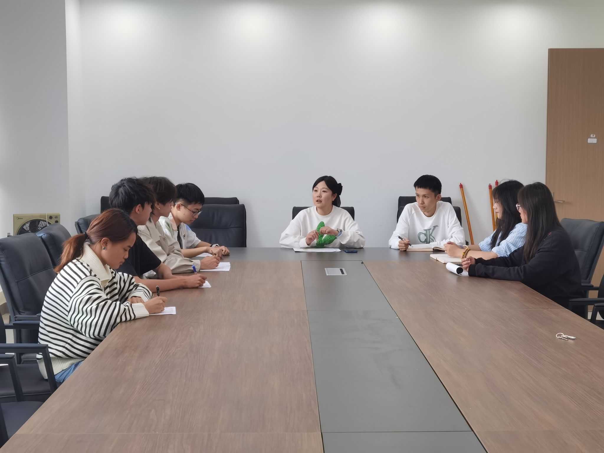 然后,员工管理办公室主任李挺之对员工会工作提出指示。一是定期组织部门工作会、全体员工干部大会,交流工作经验,加强员工会内部团结;二是集思广益,创新公司活动,帮助大一新生尽快融入老员工活;三是校运会在即,员工会部门应各司其职,为同学们提供相关服务。