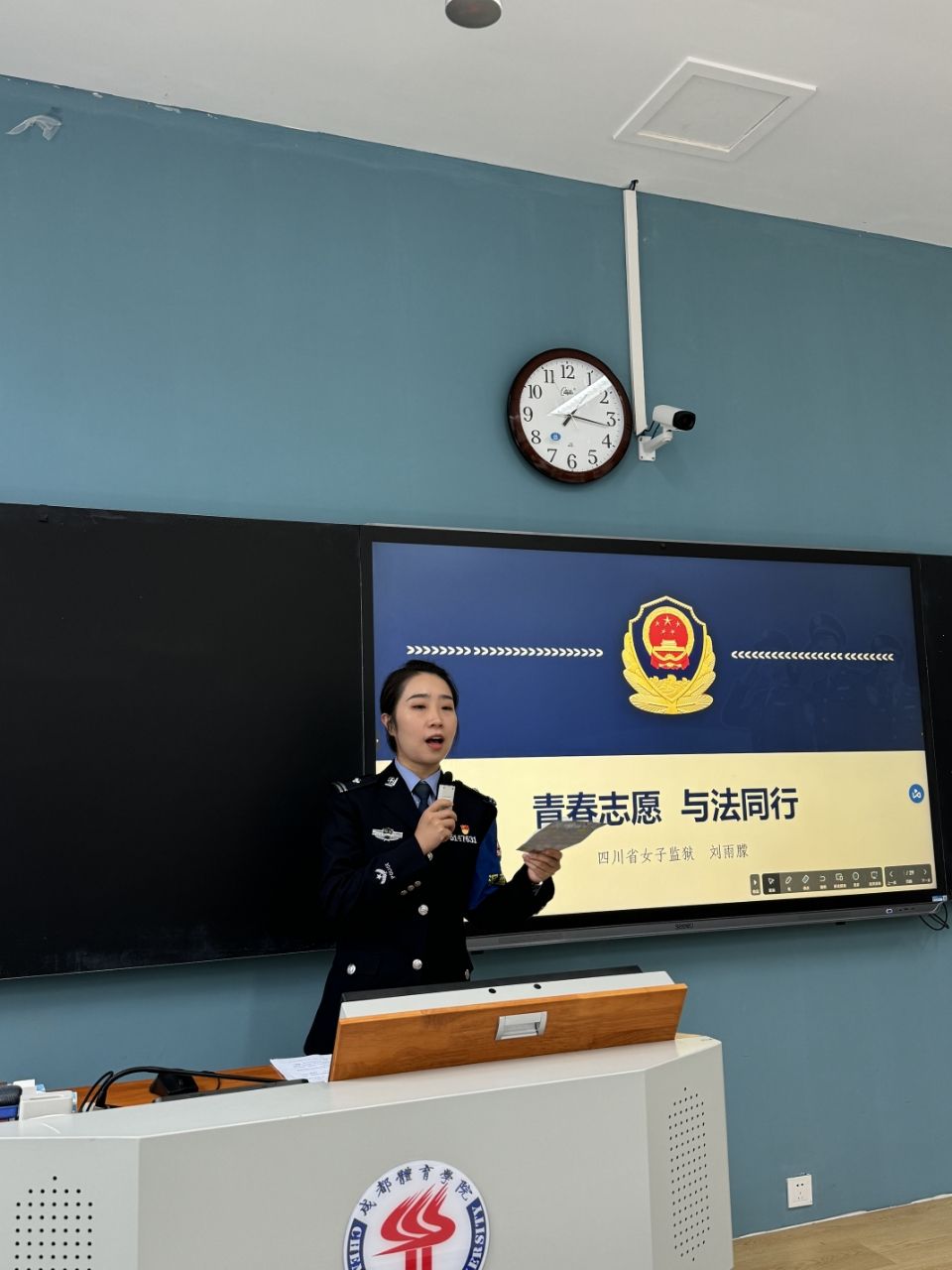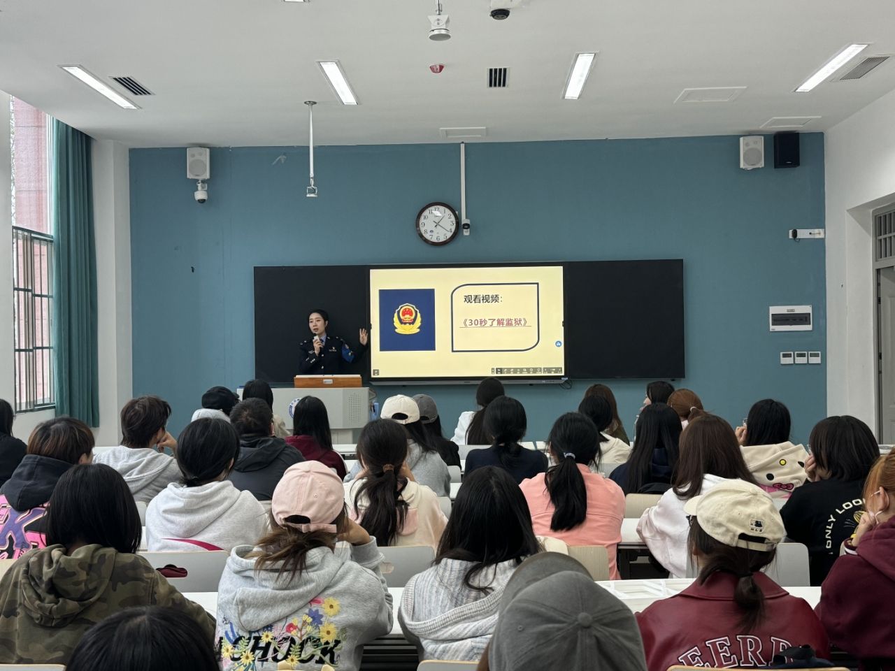 为进一步学习贯彻习近平法治思想,引导青年员工学法、知法、懂法、守法、用法,10月31日下午13:20,新闻与传播学院邀请到了四川省女子监狱政策法规科科长刘雨濛警官,为2024级新生上了一堂生动的法制课。