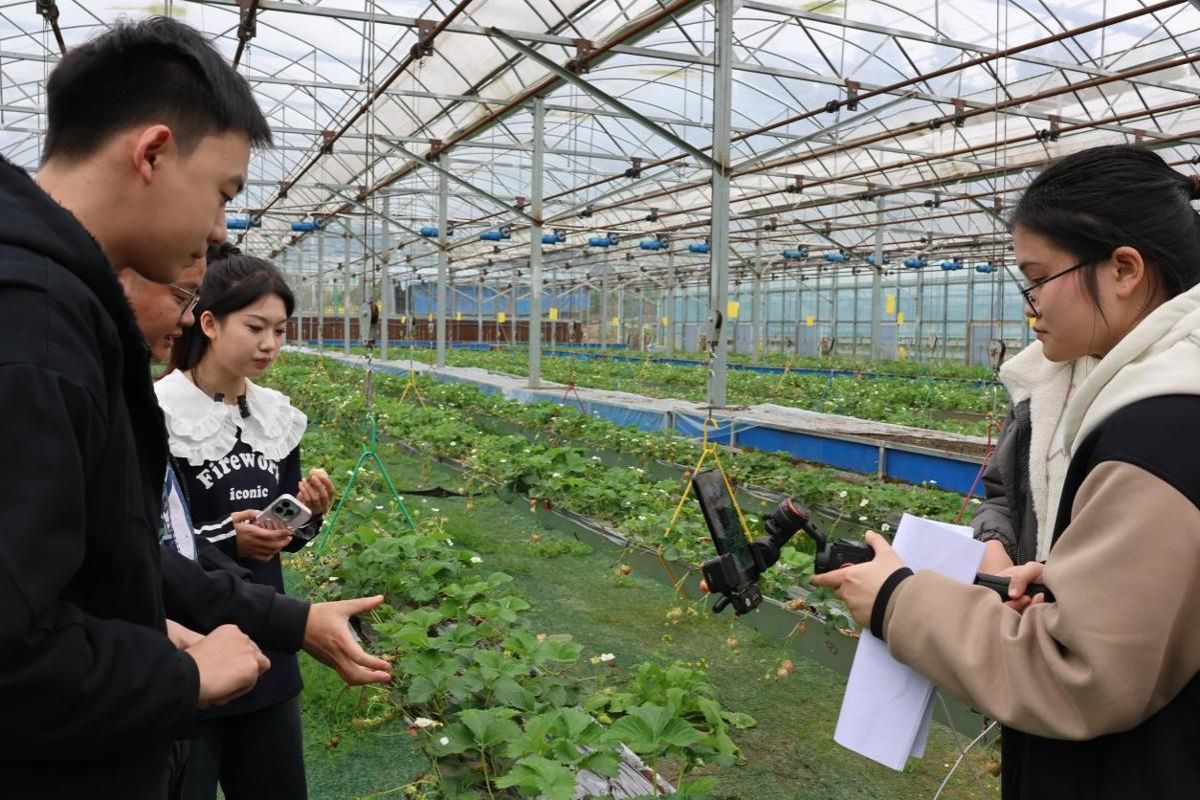 调研中,同学们深入田间地头,围绕产业发展、文化传承、集体经济建设等方面开展实践活动。员工们在老师的指导下,充分发挥专业特长,以融媒体为媒介,扩宽传播渠道,通过抖音、微信视频号平台传播乡村文化,推广草莓、蓝莓、羊肚菌手工高架面等特色农产品,助力菜子村加强“三品建设”。