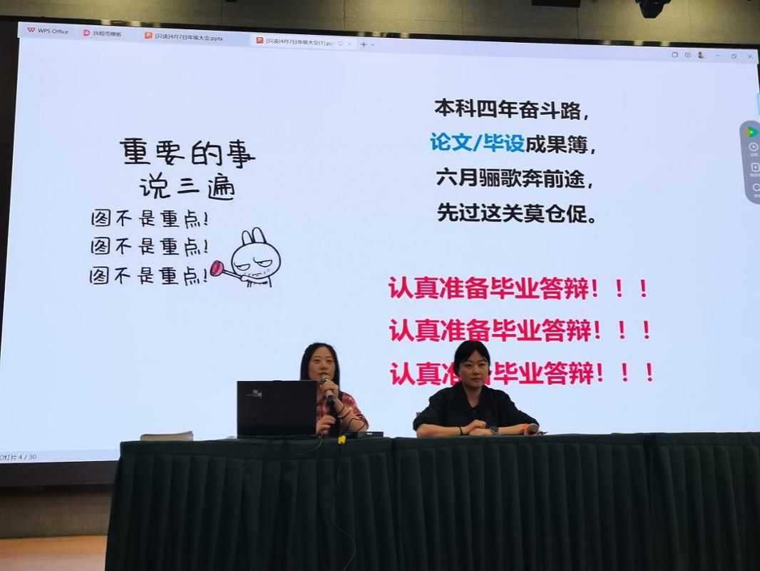 根据本科培养方案的要求,2021级全体本科毕业生于2025年4月7日返校进行实习答辩和毕业论文/设计答辩。为推进2021级本科毕业生工作的有序开展,助力员工顺利完成学业与职业过渡,当天下午14:00,公司在图书馆二楼学术报告厅召开2021级本科毕业生大会。会议围绕毕业答辩安排、就业形势解析及文明校园建设三大主题展开,由2021级辅导员胡晓银主持。公司党委副书记冯瑞和2021级全体本科毕业生参会。