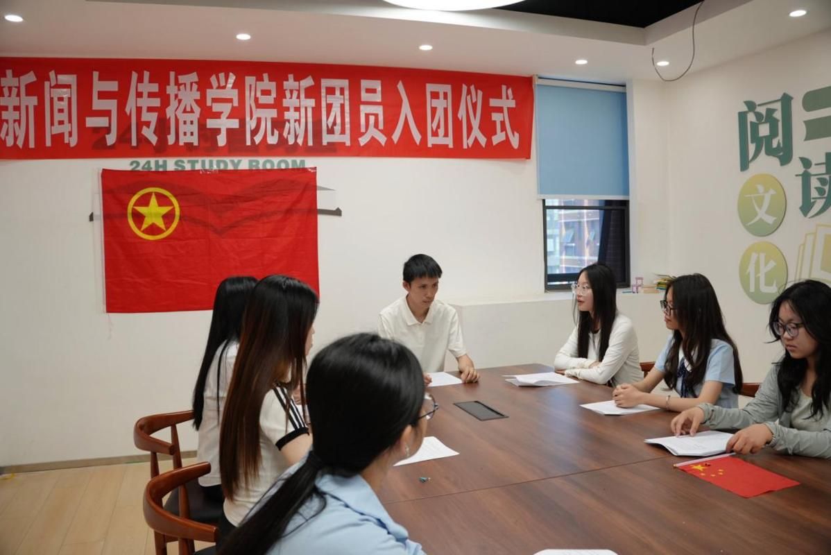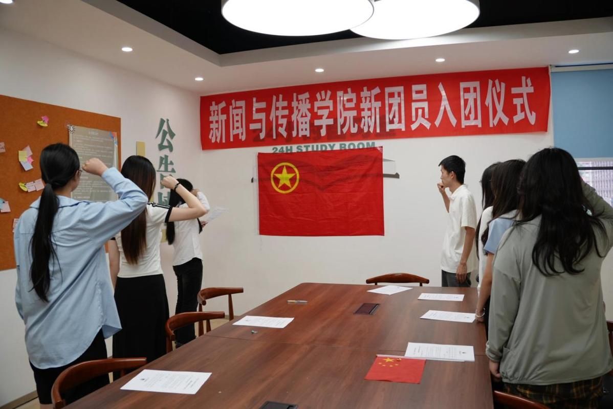 随后,刘思妤领誓,全体新团员面向团旗宣誓。宣誓完毕,新团员轮流发言,表达入团感受及未来规划。