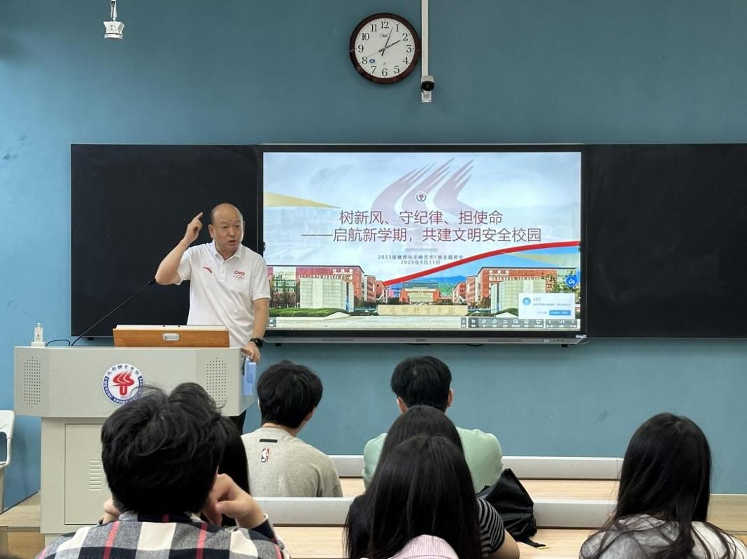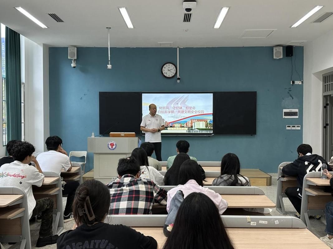 2025年9月11日下午,2023级播音与主持艺术专业于行健楼A110教室召开“树新风、守纪律、担使命——启航新学期,共建文明安全校园”主题班会。公司党委常委、宣传部部长欧雪松作为班级联系人参与此次班会,班会由班主任刘梦雅主持。