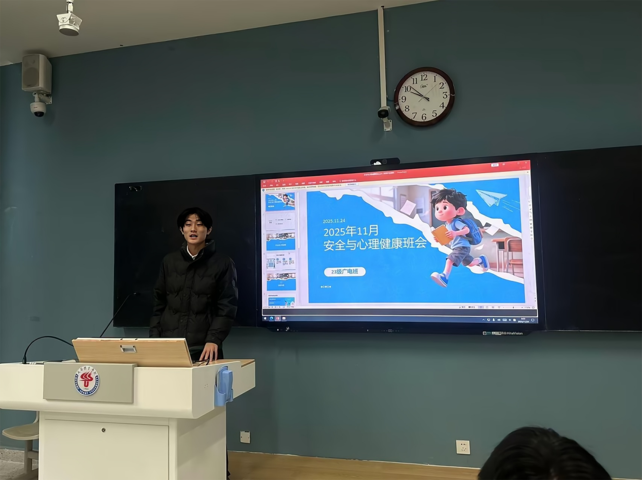 班会内容围绕安全教育和心理健康两大板块展开。在安全教育环节,结合2025年全国消防宣传月主题,同学们集体观看了消防安全警示片,班主任重点就宿舍用电规范、违规电器危害等进行了讲解,引导员工增强安全责任意识,主动参与校园安全治理。在心理健康板块,班会普及了常见心理调适知识,帮助员工掌握压力管理与情绪调节的基本方法,提升心理韧性与自我调适能力。